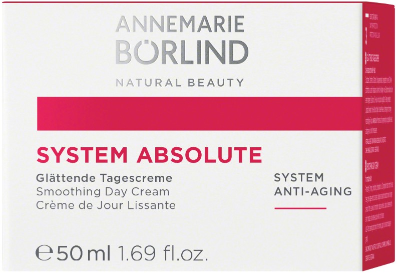 Börlind System Absolute Anti-Aging Smoothing Day Cream är en anti-aging-dagkräm som innehåller ett algextrakt och vårdande ingredienser inkapslat i en 3D-matrix. Dagkrämens ingredienser frigörs i sekvenser och aktiverar produktionen av kollagen och elastin med långtidseffekt.