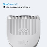 Braun Body Groomer för män är ett grooming-verktyg med SkinGuard-teknologi för att minimera skärsår och skydda känslig hud. Låter dig trimma och raka var som helst. Kroppstrimmern har en avtagbar Sensitive Comb för att säkerställa en säker och bekväm upplevelse genom att förhindra hudkontakt med bladet. Body Groomer Series 3 är vattentät och har 80-minuters batteritid.