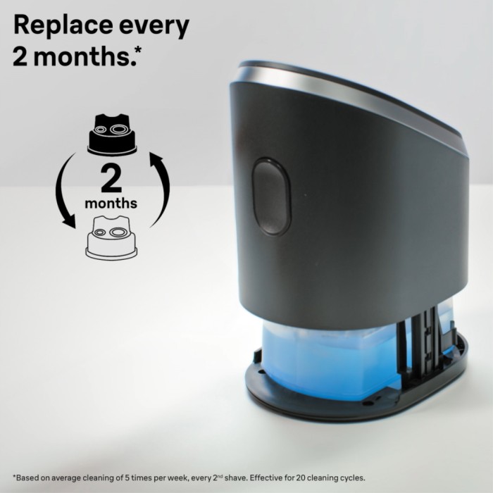 Denna refill är en originalprodukt från Braun och har utvecklats i Tyskland för att vara helt kompatibel med alla Braun SmartCare eller rengöringscenter. För en rakhyvel som är som ny varje dag, byt ut refillpatronen varannan månad (Baserat på en genomsnittlig rengöring på 5 gånger i veckan, varannan rakning. Effektiv i 20 rengöringscykler).