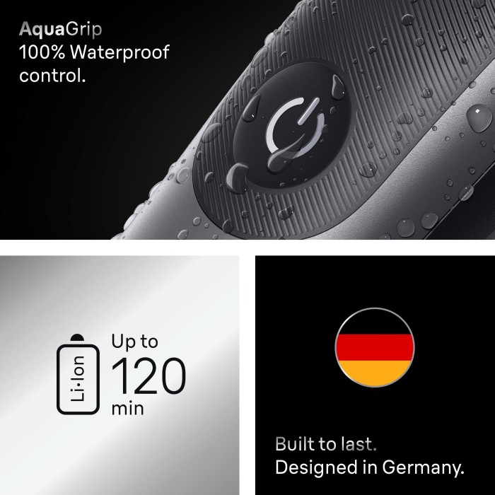 - Vattentät och har AquaGrip för kontroll även under duschen.