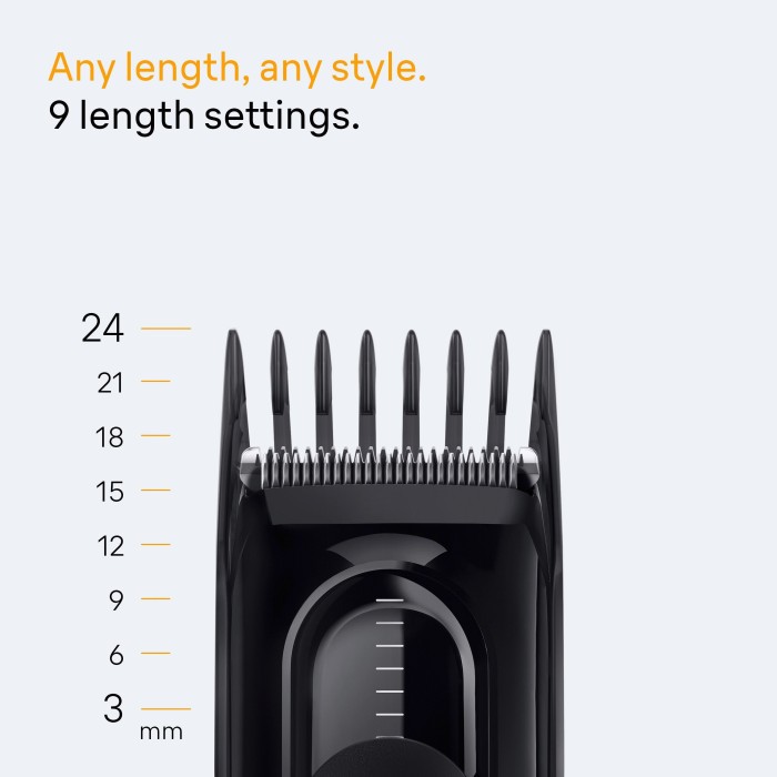 - Livslångt skarpa blad som gör hårklippningen snabb och enkel, oavsett hårets längd eller tjocklek