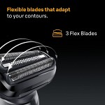 - 3 flexibla blad anpassar sig efter dina unika ansiktskonturer för en nära rakning samtidigt och skyddar huden