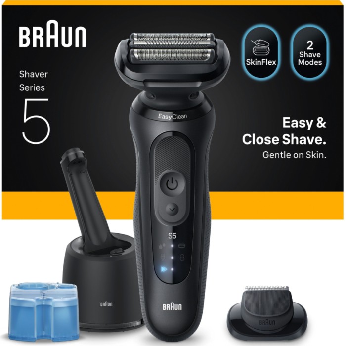Förpackningen innehåller: 1 st Series 5 rakapparat, 1 st SmartCare Center, 1 st rengöringspatron, 1 st precisionstrimmer, 1 st skyddskåpa, 1 st smart kontakt, 1 st rengöringsborste.