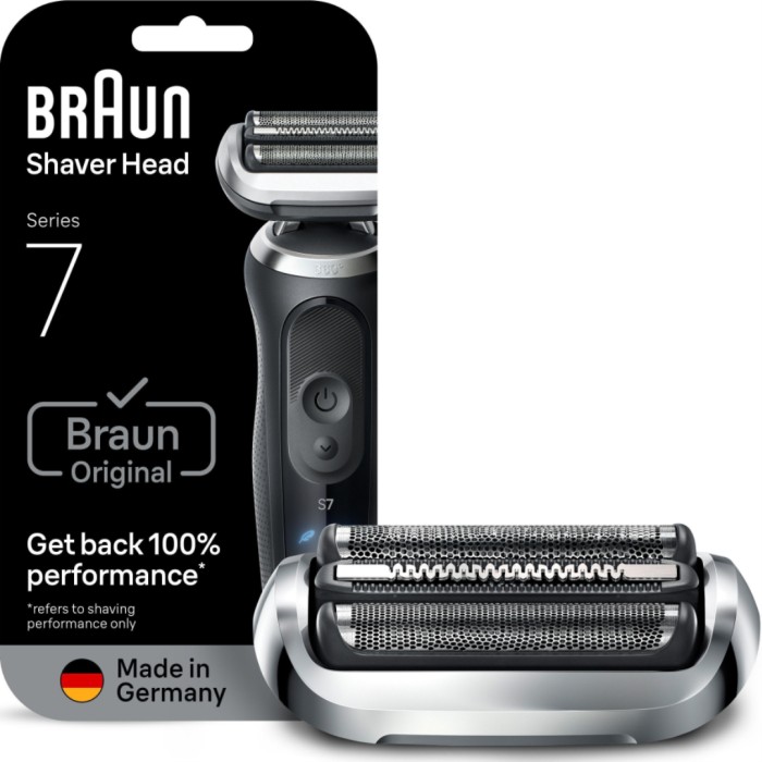 Braun Series 7 rakhuvud 74S är kompatibelt med Series 7 generationer 70, 71, 72. Är enkelt att byta med bara ett klick. Ger en närmare och snabbare rakning jämfört med tidigare Series 7. Har ett 360 SkinFlex-huvud & tre flexibla blad som anpassar sig till ansiktets konturer för en närmare rakning (jämfört med tidigare Series 7) även på svåråtkomliga områden. Är skonsam mot huden med folieteknik som skyddar huden från skärsår och skråmor.