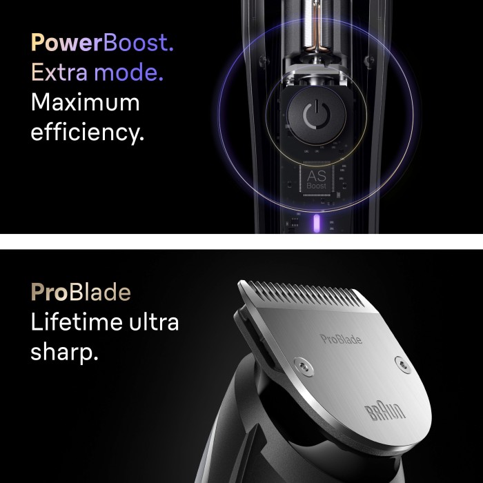 - Maximal effektivitet: Trimma även de tätaste skäggen med PowerBoost extra-läge och få jämnhet på alla skägg med AutoSense-teknologi