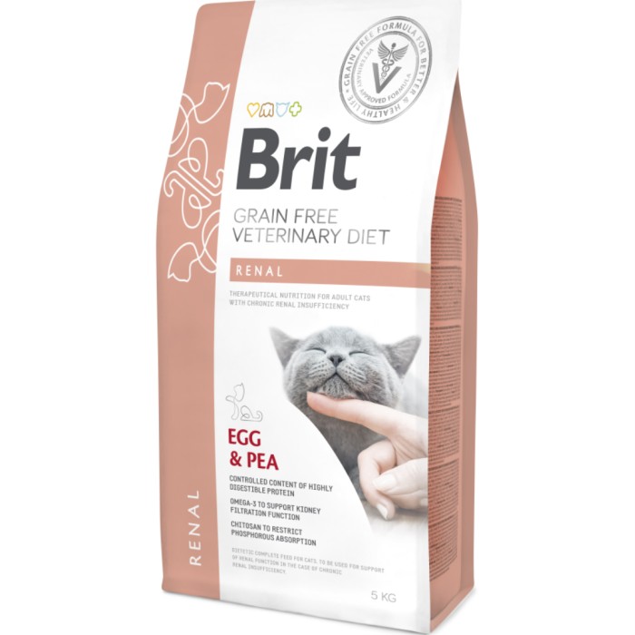 Brit GF Vet Diets Cat Renal är ett komplett dietfoder för katter, som stödjer njurfunktionen vid kronisk njurinsufficiens.