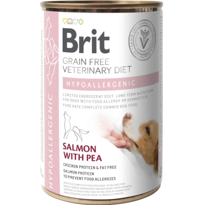 Brit GF Vet Diets Dog Can Hypoallergenic är ett komplett dietfoder för hundar – reducerar symptom relaterade till intolerans mot ingredienser och näringsämnen. Stöttar hud och päls.