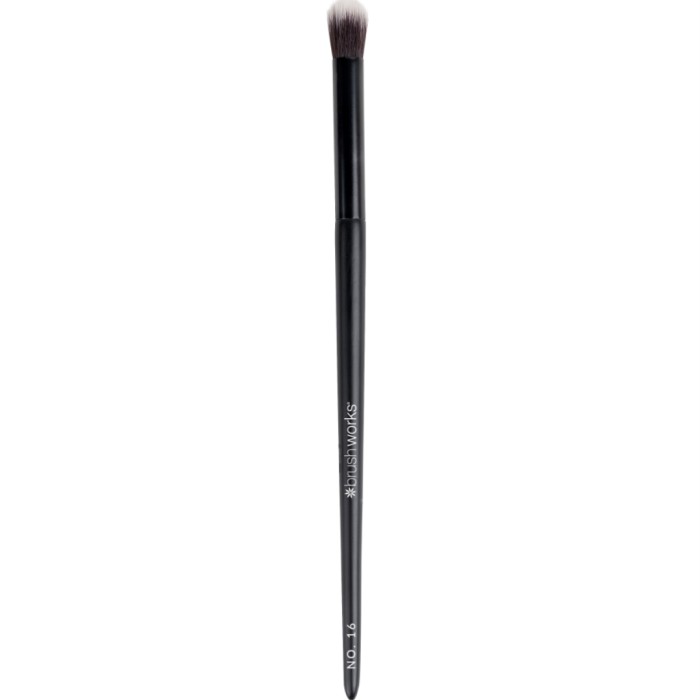 Brushworks No. 16 Tapered Blending Eye Brush är en ögonskuggsborste med en fluffig, avsmalnande form som ger en sömlös finish varje gång. Med supermjuka taklonborststrån (syntetiska borststrån) ser denna borste till att dina ögonskuggor glider på smidigt och jämnt, samtidigt som den är skonsam mot det känsliga ögonområdet.