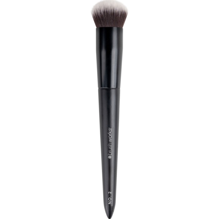 Brushworks No. 2 Buffing Foundation Brush är en kompakt, kupolformad buffingborste för applicering av flytande- och krämfoundations. Designad för att ge en felfri finish. Borsten har supermjuka taklonborst som gör att produkterna glider på huden smidigt och jämnt.