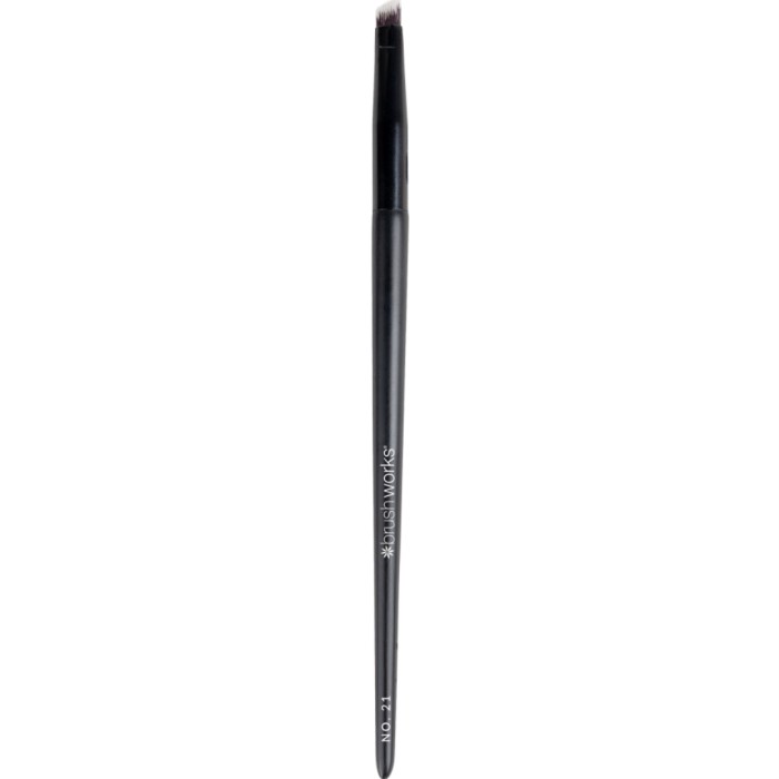 Brushworks No. 21 Precise Brow Brush är en ögonbrynsborste som kan används med puder, kräm och flytande produkter för att enkelt fylla i ögonbrynen. Med supermjuka strån av taklon (syntetiska borststrån) gör denna borste att dina sminkprodukter glider på smidigt och jämnt.