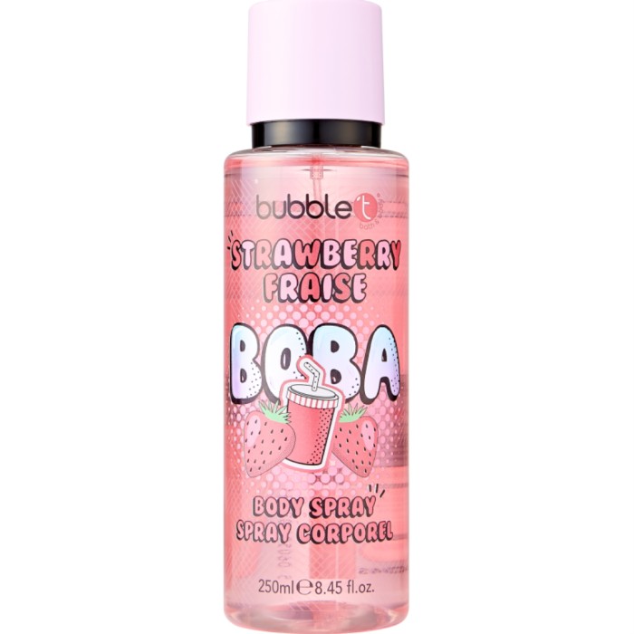 Boba Strawberry Body Spray är en lätt och uppfriskande kroppsspray med jordgubbsdoft. Den fina sprayen sprider sig lätt på huden och ger en snabb doftboost.