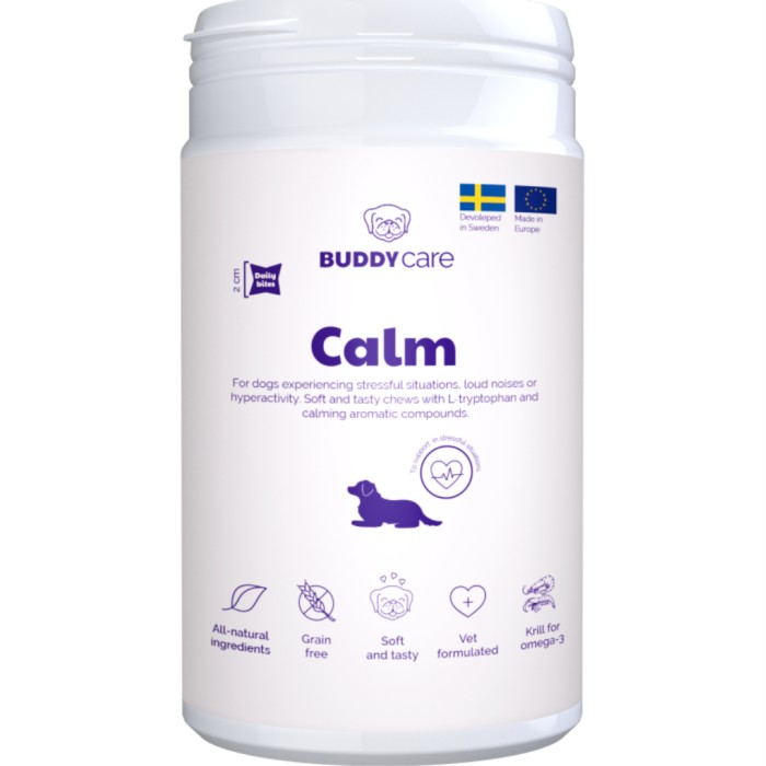 BuddyCare Calm Chews är framtagna för att hjälpa din hund att vara lugn och avslappnad. Calm Chews är berikade med krillprotein, magnesium och inaktiverad jäst, och tuggbenen är framtagna för att främja en känsla av lugn och välbefinnande.