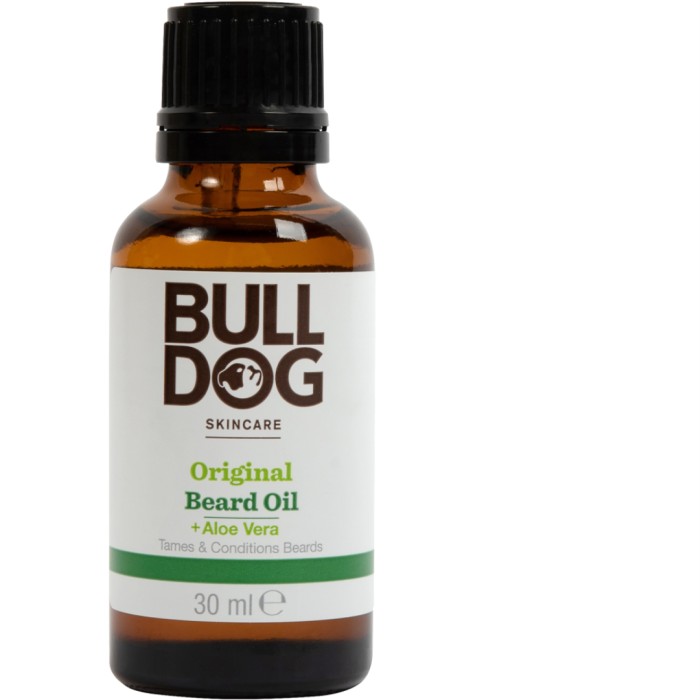 Bulldog Original Beard Oil är en skäggolja med 99 % naturliga ingredienser. Den är utvecklad för att tämja, mjukgöra och återfukta ditt skägg samtidigt som den tar hand om huden under skägget och lugnar huden. Bulldogs originaldoft med subtila noter av bland annat citron, lime och patchouli. Produkten innehåller bland annat aloe vera, känd för sina återfuktande och lugnande egenskaper.
