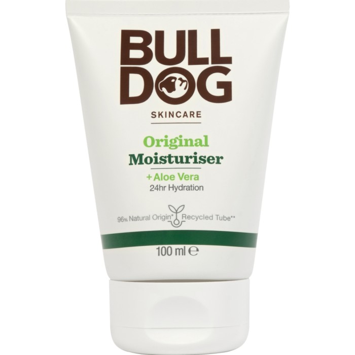 Bulldog Original Moisturiser är en fuktighetskräm för män, med 96 % naturliga ingredienser. Den är utvecklad för att återfukta hela dagen utan att göra huden fet eller klibbig. Produkten innehåller bland annat aloe vera, känd för sina återfuktande och lugnande egenskaper.
