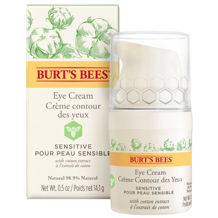 Burt's Bees Sensitive Skin Eye Cream är en ögonkräm för känslig hud. Krämen återfuktar den tunna huden runt ögonen utan att orsaka rodnad. Ögonkrämen innehåller bl a bomullsextrakt som bidrar till att skydda huden.