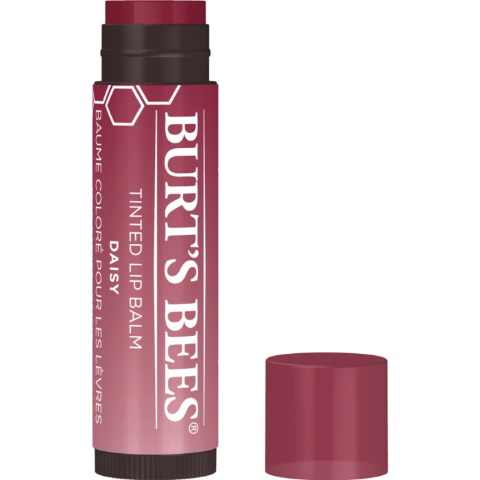 Burt's Bees Tinted Lip Balm Daisy är ett läppbalsam med en plommon-ton som ger en naturlig look. Burts Lipbalm innehåller naturliga vaxer och sheasmör som ger näring till läpparna och gör torra läppar mjuka igen. Ger läpparna en hint av färg och en stor dos av fukt.