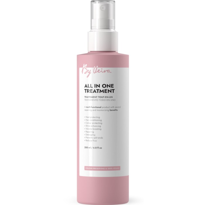 By Veira All-in-one Treatment är en allt-i-ett-behandling för håret med volymökande och hårvårdande ingredienser som gör håret fint och lätt att hantera. Formuleringen innehåller värmeskyddande och UV-skyddande ingredienser. All-in-one Treatment har en infusion av bambuextrakt och solrosolja som gör håret mjukt, glänsande och lätt att kamma. Innehåller färgbevarande ingredienser och är vegansk.