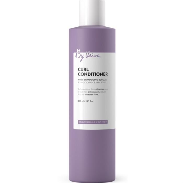 By Veira Curl Conditioner är ett näringsrikt hårbalsam som ger intensiv fukt och fin glans utan att tynga ner håret. Balsamet innehåller färgbevarande ingredienser och är veganskt. Formuleringen innehåller inga silikoner.