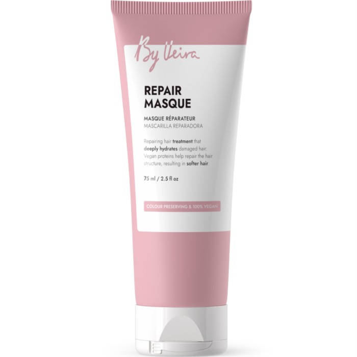 By Veira Repair Masque är en reparerande hårinpackning för skadat, slitet och torrt hår. Inpackningen innehåller veganska proteiner och solrosextrakt som stärker hårstråna vilket resulterar i ett mjukare hår. By Veira Repair Masque innehåller färgbevarande ingredienser och är vegansk. Formuleringen innehåller inga silikoner.