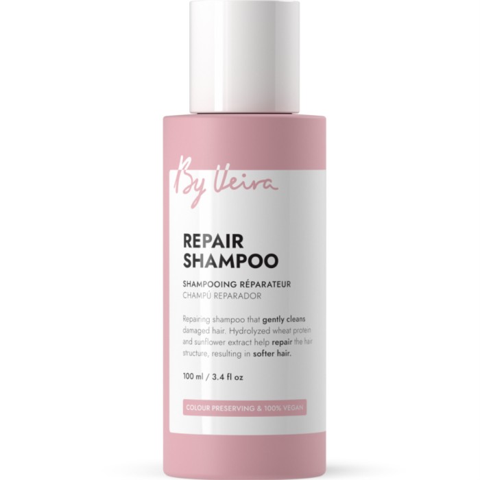By Veira Repair Shampoo är ett reparerande hårschampo som skonsamt rengör och återställer skadat hår. Repair-schampot passar för kemiskt behandlat och slitet hår. Det är berikat med hydrolyserat veteprotein och solrosextrakt för att ge fukt och återuppbygga hårets struktur. Innehåller färgbevarande ingredienser och är veganskt. Formuleringen innehåller inga sulfater eller silikoner.