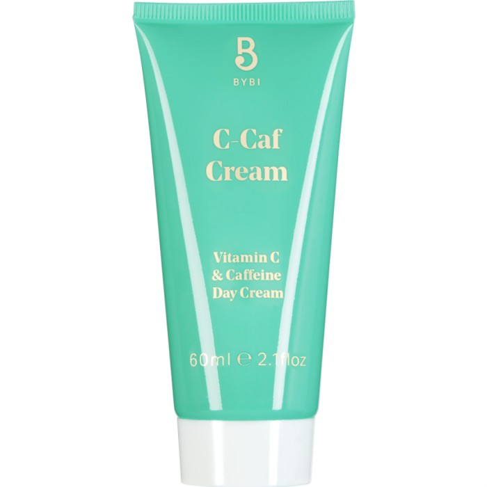 BYBI C-Caf Cream Vitamin C & Caffeine Day Cream är en återfuktande dagkräm som ger huden lyster. BYBI ansiktskräm innehåller C-vitamin, koffein, sheasmör, glycerin, squalane och matchaextrakt. Fuktkrämen har en dubbel C-vitamin-formulering som hjälper till att minimera hypergimentering och ojämn hudton.