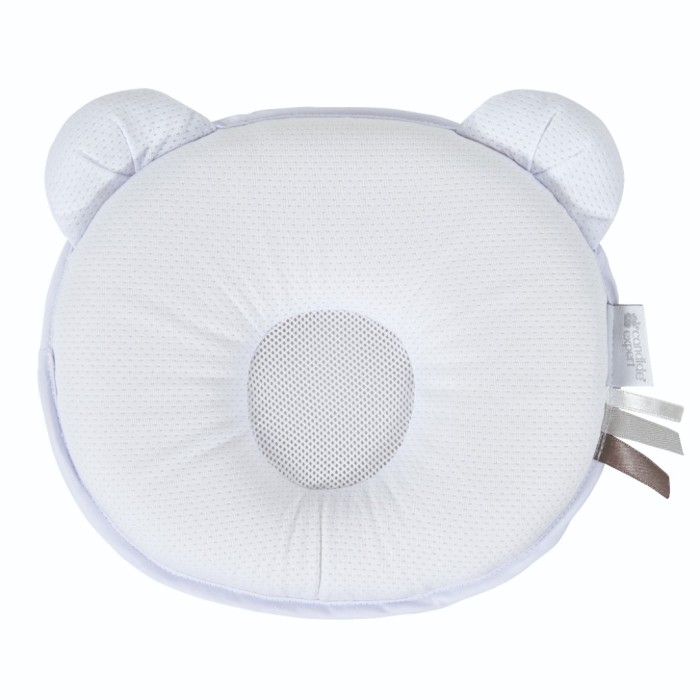Candide Air Panda Babykudde är en liten, smidig och säker babykudde med ergonomisk form och i material som kan andas. Kuddens mitt har ett tunt mesh-tyg med temperaturreglerande egenskaper, då små barn har svårt att reglera sin kroppstemperatur. Resten av yttertyget är ett mikroperforerat vävt tyg som leder bort svett från barnets huvud.
