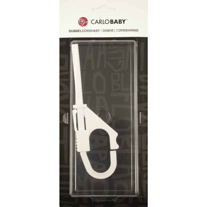 Carlo Baby Dubbeldörrhasp är en säkerhetshasp som används för att låsa två dubbeldörrar. Till exempel kan du barnsäkra skåp i badrumet eller köket, för att förhindra att barn kommer åt olämpliga produkter. Bygeln monteras över handtagen på dörrarna, för att låsa dem.