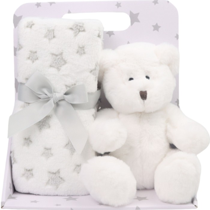 Carlo Baby Fleecefilt Grå Stjärna & Gosedjur Vit Nalle