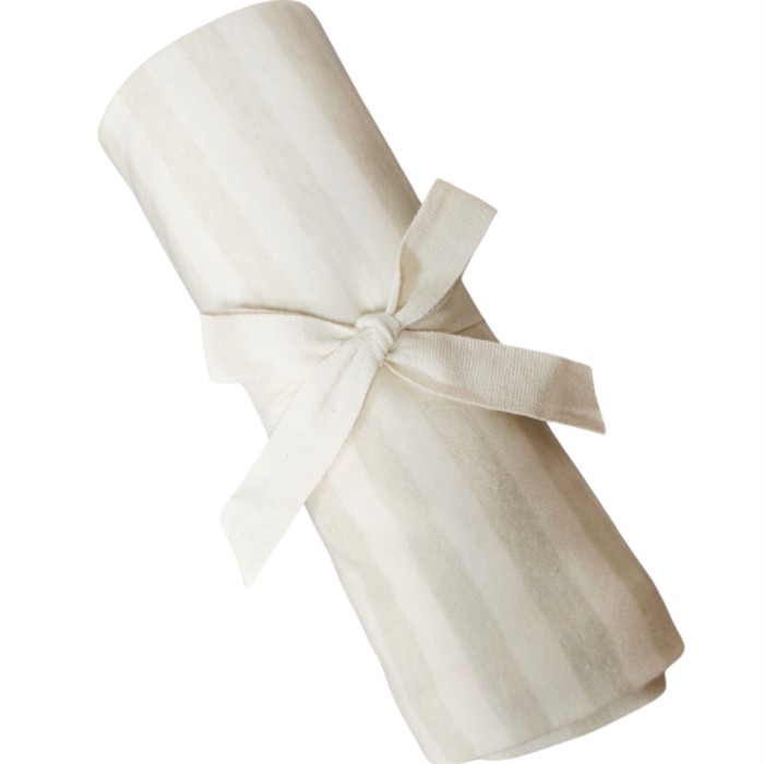 Carlo Baby Jerseyfilt bred rand är en mjuk bomullsfilt i stor storlek för de minsta. Jerseymaterialet med de fina beige-vita ränderna blir bara blir mysigare ju mer den används.