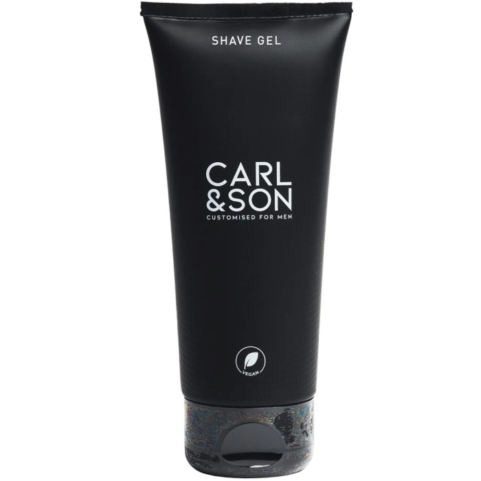 Carl&Son rakgel innehåller både återfuktande och vårdande ingredienser som glycerin och aleo vera för att ge en skonsam rakupplevelse.