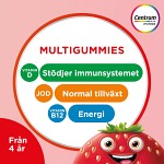 Centrum Barn Multivitamin Gummies är ett kosttillskott framtaget för näringsbehovet hos barn från 4 år. Dessa gummies med vitaminer och mineraler innehåller bland annat vitamin A, vitamin B6, vitamin B12 , vitamin C, vitamin D, jod och zink. Smak av jordgubb. 1 gummie per dag. Tuggbar och kan tas utan mat eller vatten. För barn från 4 år.
