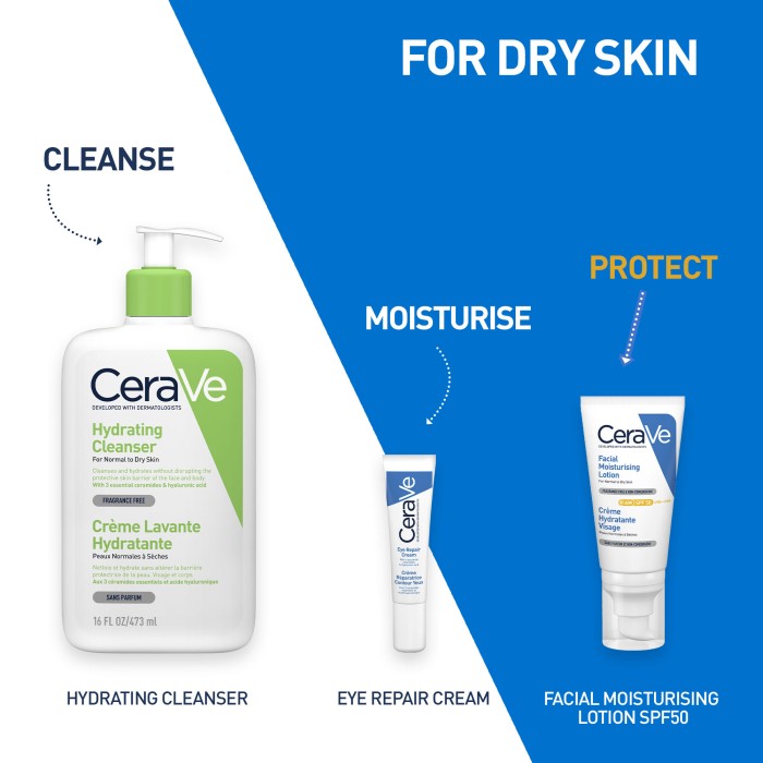 CeraVe Facial Moisturising Lotion SPF50 är en ansiktslotion som tillför fukt och hjälper till att stärka hudbarriären, samtidigt som den skyddar mot solens UVA/UVB-strålar. Formuleringen innehåller tre essentiella ceramider, hyaluronsyra, niacinamid och vitamin E och absorberas snabbt av huden. MVE-teknologin gör att de fuktighetsgivande ingredienserna frigörs kontinuerligt och bidrar till att hålla huden återfuktad, mjuk och behaglig hela dagen. Utan parfym. För normal till torr hud.