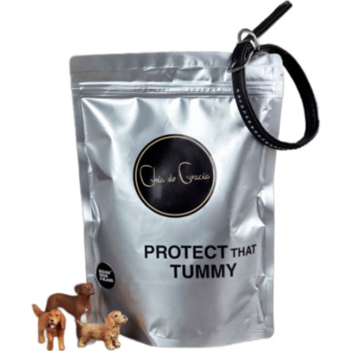 Chia de Gracia Protect that Tummy är ett fodertillskott för hund, som innehåller pulver av bockhornsklöverfrö, nypon, pektin, öljäst, lecitin, inulin. Produkten bildar en gelhinna i tarmsystemet och är avsedd att skydda magsäckens slemhinna från matsmältningsvätskornas syrlighet. Innehåller rikligt med fiber som bidrar till att upprätthålla tarmens funktion. Kan ges till hundar som lider av halsbränna eller stressmage.