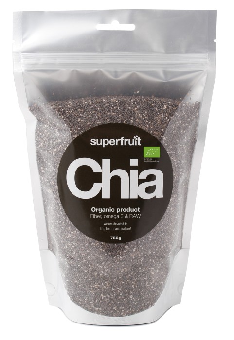 Chiafrön innehåller mer än 20% omega-3 och 33% kostfiber. Chiafrö är en rik källa till omega-3, ALA (alpha-lineolic-acid), fiber och protein. Fröna innehåller mineralämnen såsom fosfor, kalcium och kalium. Du kan använda chia i müsli, smoothies, matlagning och brödbakning. 1 msk (5 g chiafrö) ger 1 gram omega-3.