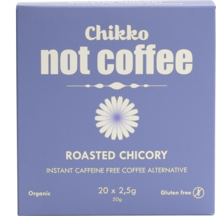 Chikko Not Coffee Roasted Chicory är en ekologisk, aromatisk dryck (ett pulver) gjord av rostad cikoria som är naturligt koffeinfritt. Chikko Not Coffee har en len och fyllig smak med en väl avvägd bitterhet. Pulvret blandas med varmt vatten.