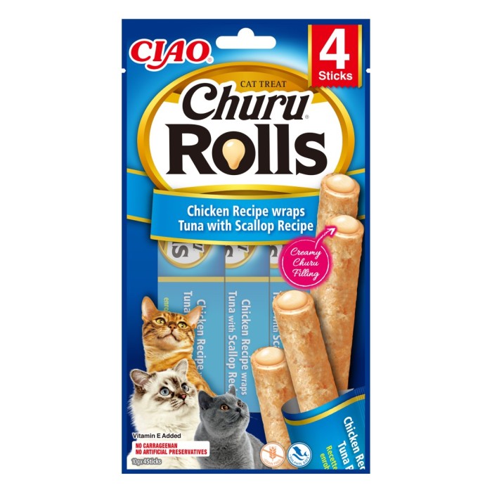 Churu Cat Rolls Chicken & Tuna Wrap with Scallop 4 st