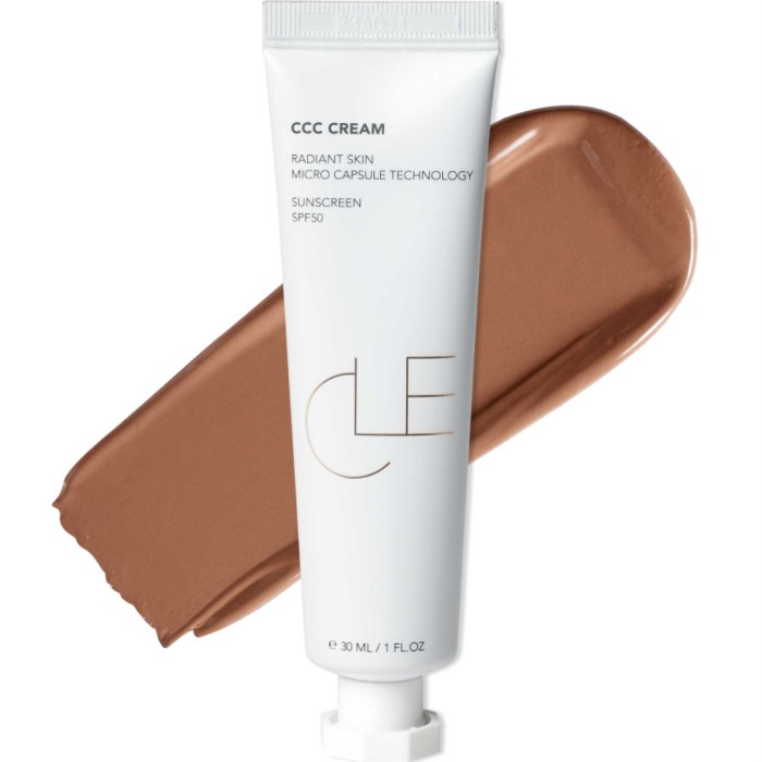CCC Cream (Color Control & Change Cream) från CLE är en lätt allt-i-ett primer och foundation med SPF 50. Den innovativa BB- och CC-cream-hybriden är framtagen med Micro Capsule Teknologi vilket gör att att formuleringen smidigt smälter in i huden och jämnar ut hudens struktur. CCC Cream ger en daggig, återfuktad hud och har en lätt men byggbar täckning som ger huden fin lyster. Nyans: Cool Medium Deep 306.