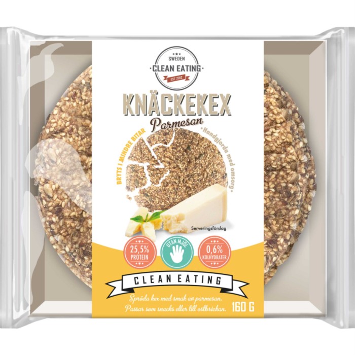 Clean Eating Knäckekex Parmesan är spröda kex med smak av parmesan. Kan passa bra som snacks eller som tillbehör till ostbrickan.