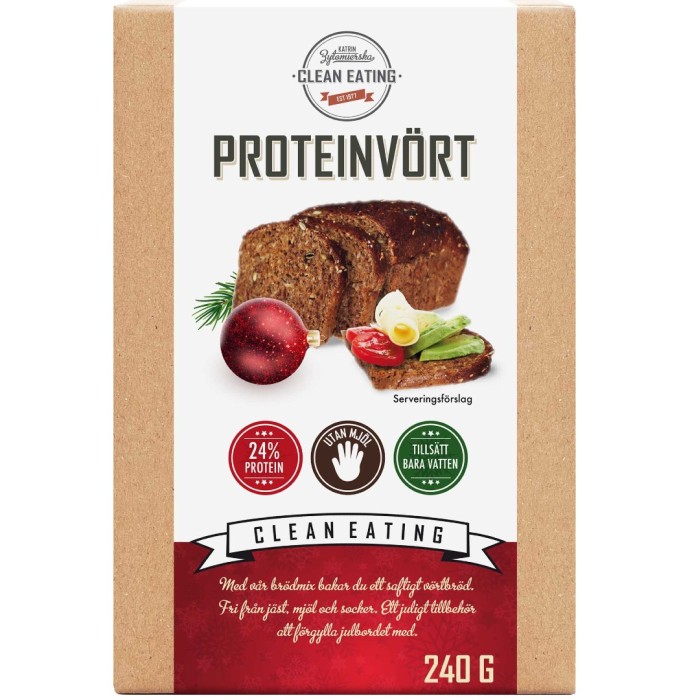 Med Clean Eating Proteinvörtmix kan du baka ett saftigt vörtbröd med få kolhydrater - tillsätt endast vatten. Clean Eating Proteinvört innehåller inte jäst eller mjöl.
