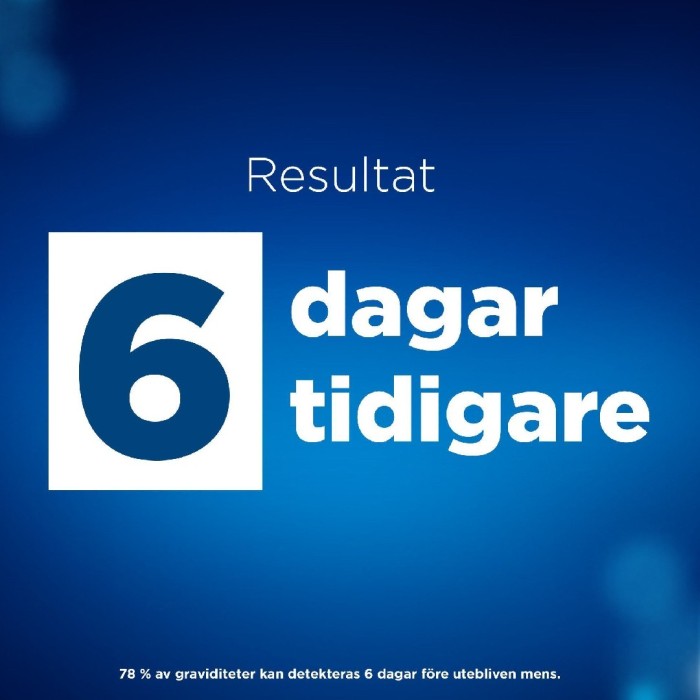 - Testa tidigt. Resultat från sex dagar innan utebliven mens.