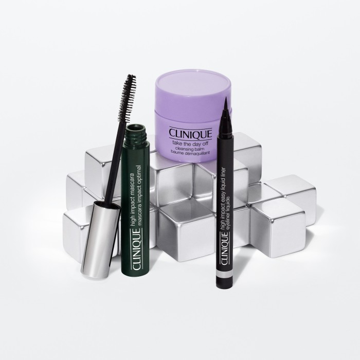 High Impact mascara ökar volymen och längden på varje ögonfrans för att ge fylligare, tjockare och djärvare fransar. High Impact Easy Liquid Liner ger det "dramatiska" resultatet du får av en flytande eyeliner, men utan dramatiken som kan vara förknippas med att applicera den. Take The Day Off Cleansing Balm förvandlas från en fast balm till en silkeslen olja som smälter bort ögon- och ansiktsmakeup samt solskyddskrämer. I resevänlig storlek.