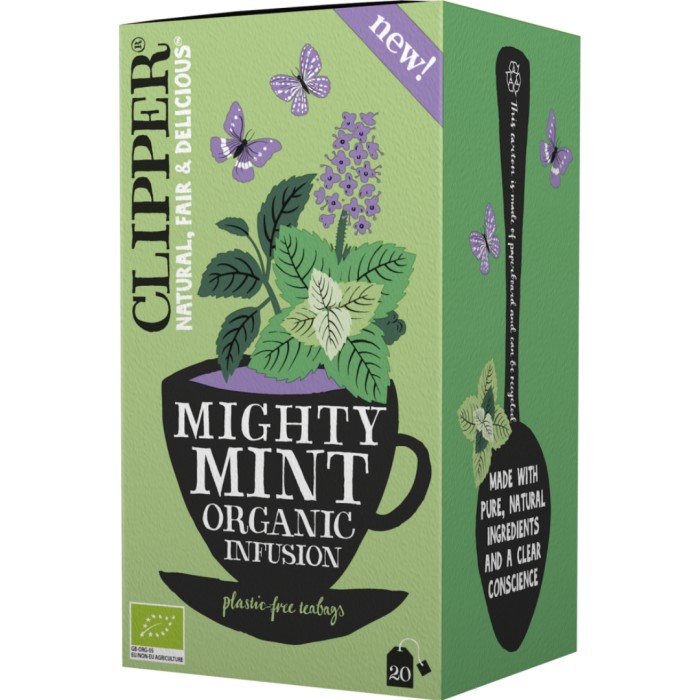 Clipper Mighty Mint är ett ekologiskt örtte med pepparmynta som har en uppfriskande och fräsch smak. Ett te som är gott att avnjuta när som helst under dagen, och kanske framför allt efter en måltid.