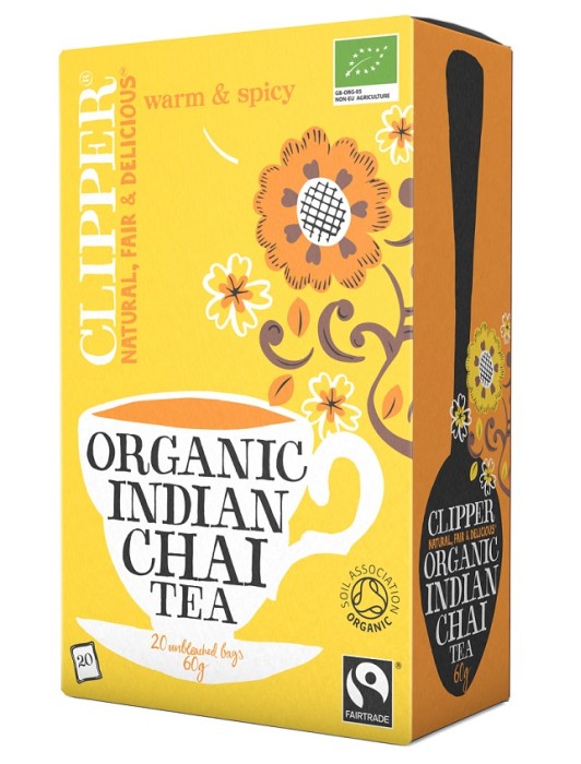 Clipper Organic Indian Chai Tea är ett fairtrade-odlat kryddigt te från Indien. Teet är en blandning av svarta teer som är smaksatt med värmande kryddor.