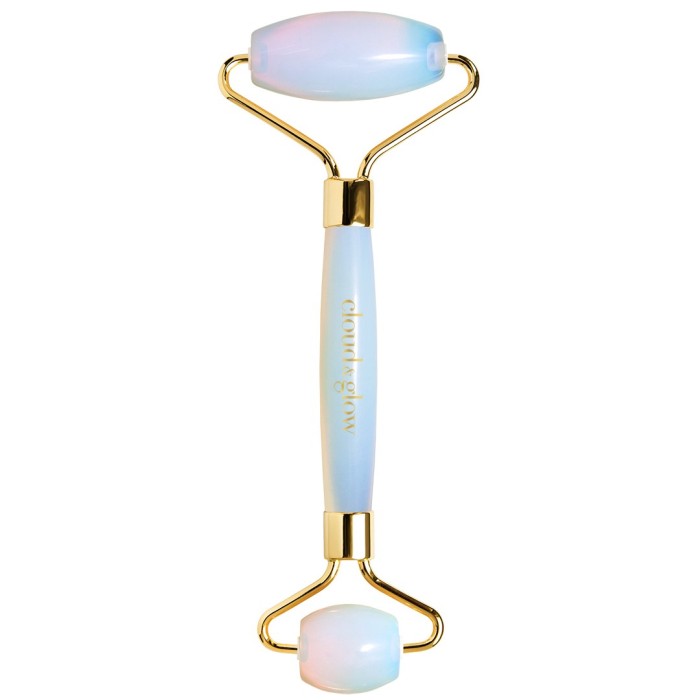 Cloud & Glow Opalite Roller är ett ansiktsverktyg tillverkat av opalit. Du använder rollern för att massera ansiktet samtidigt som du arbetar in ett serum eller en olja i huden.