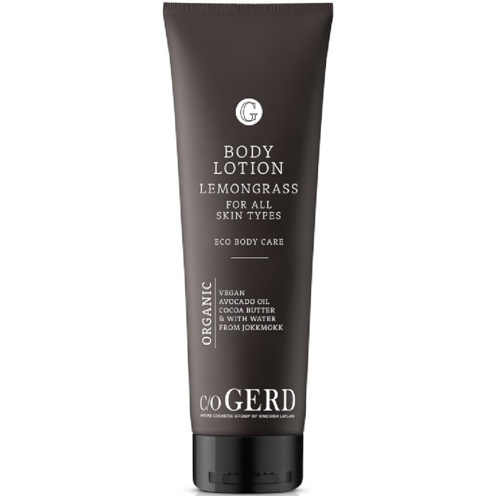 Body Lotion Lemongrass är en mjukgörande och väldoftande hudlotion för torr hud. c/o Gerds bodylotion är lättabsorberad och känns inte kladdig.