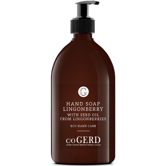 c/o GERD Hand Soap Lingonberry är en flytande handtvål som tvättar händer rena på ett skonsamt sätt, samtidigt som den vårdar huden.