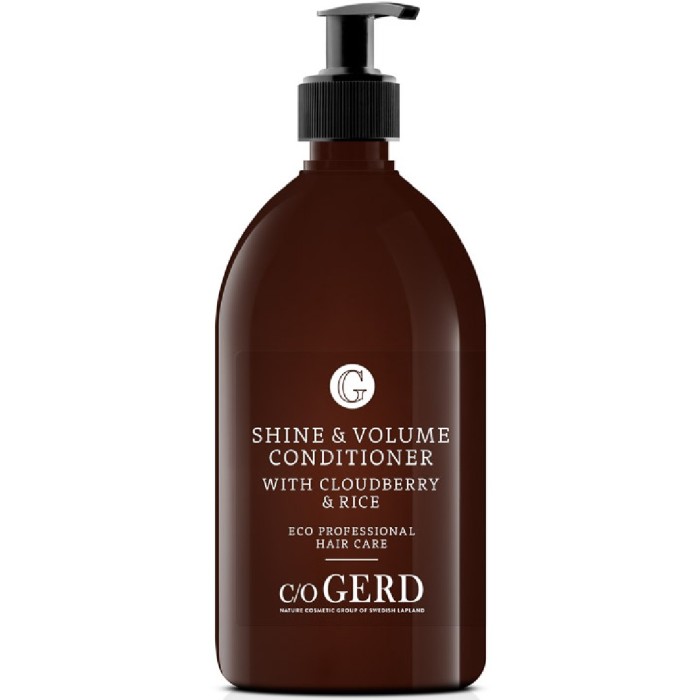 c/o Gerd volymbalsam innehåller risstärkelse som fäster som ett skyddande hölje kring hårstrået och ger håret volym och lyster. Innehållet av hjortronfröolja tillför håret fettsyror och C-vitamin. Ger en långvarigt luftig känsla till håret. Balsamet har en fräsch doft av hjortron, grapefruit och vaniljextrakt.