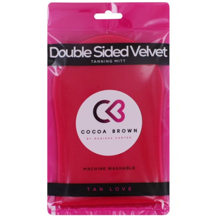 Cocoa Brown Deluxe Velvet Double-Sided Tanning Mitt har ett patenterat ytskikt för att krämen inte så lätt ska gå in i vanten. Sammetslen yta och går att tvätta i maskin.