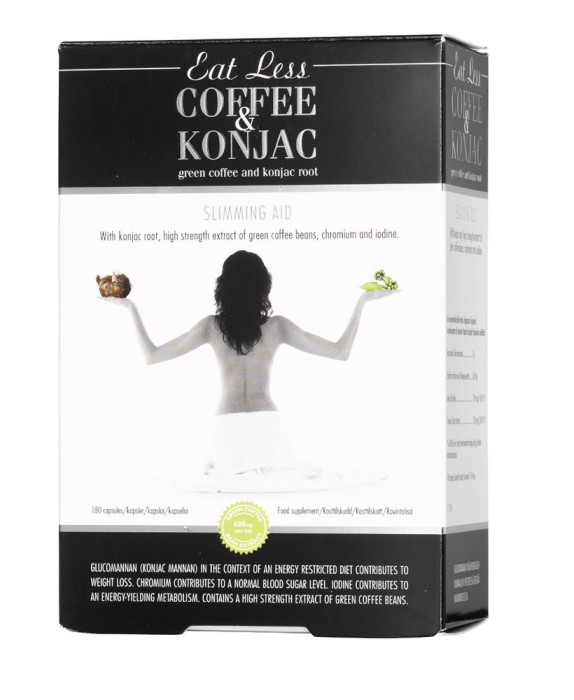 Glucomannan (Konjakrot), gelatin, extrakt från gröna kaffebönor (Coffea robusta), kalciumfosfat och kiseldioxid (klumpförebyggande medel), magnesiumstearat, krom(II)klorid och kaliumjodid.