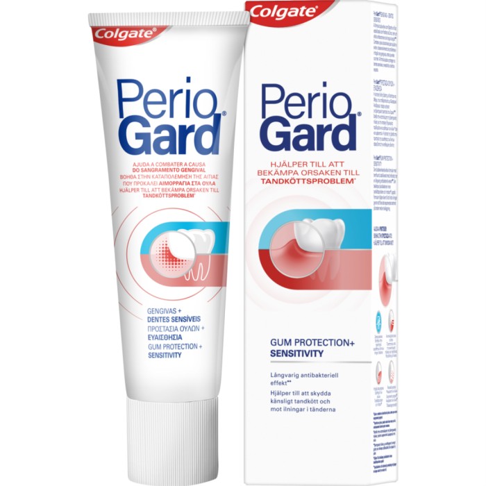 Colgate PerioGard Gum Protection & Sensitive är en tandkräm som hjälper till att motverka plackbakterier, efter kontinuerlig användning två gånger om dagen under fyra veckors tid.
